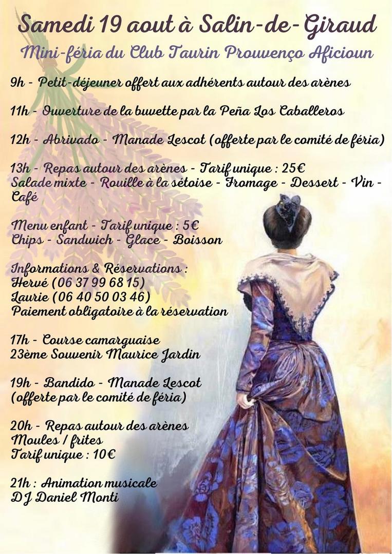 Rendez-vous le samedi 19 août 2023 à Salin de Giraud pour la Mini Féria du Club Taurin Prouvenço Aficioun ! Au programme, abrivado, repas, course camarguaise, bandido et soirée dj.