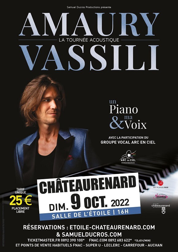 Amaury VASSILI sera en représentation exceptionnelle le dimanche 9 Octobre 2022 à 16h à la salle de l’Etoile à Châteaurenard. Deux heures de concert pour découvrir ou redécouvrir cet artiste de talent à la voix pure et puissante.