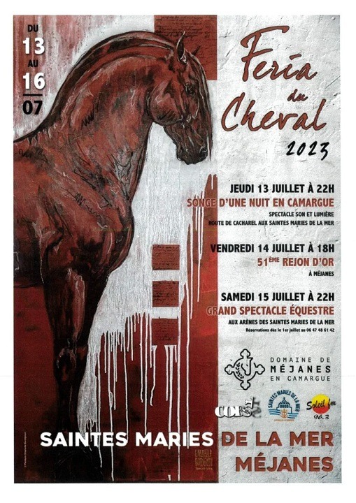 Dressage, voltige, les spectacles équestres se succèdent aux arènes avec les plus prestigieux artistes et cavaliers du moment. Les rues et les places du village sont également de la fête avec parades, concours équestres, démonstrations et nuits flamenca ! La fête se dupliquera également du côté des arènes de Méjanes le dimanche 13 juillet pour le célèbre Rejon d’Or qui mettra aux prises les stars du rejon comme Guillermo Hermoso de Mendoza et Lea Vicens face à 6 toros d Gallon Frères.