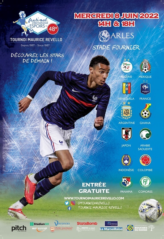 Après 23 d’absence, le Festival International Espoirs de Football revient au stade fournier à Arles le 8 juin 2022 pour 2 matchs du tournoi Maurice Revello. Le nom des 4 équipes qui joueront à Arles seront connues ce lundi 6 juin mais nul doute qu’avec la France, l’Argentine ou l’Algérie parmi lespostulants, il y a des chances que le beau football et les plus grands espoirs du football mondial soient présents sur la pelouse arlésienne ce mercredi.