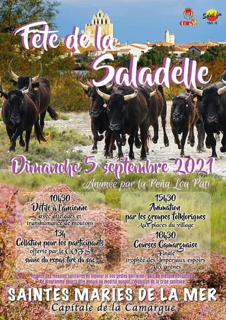 La Fête de la Saladelle aura lieu cette année le samedi 6 septembre 2026 aux Saintes Maries de la Mer ! Au programme : défilé à l’ancienne, distribution de saladelle et animations folkloriques partout dans le village.