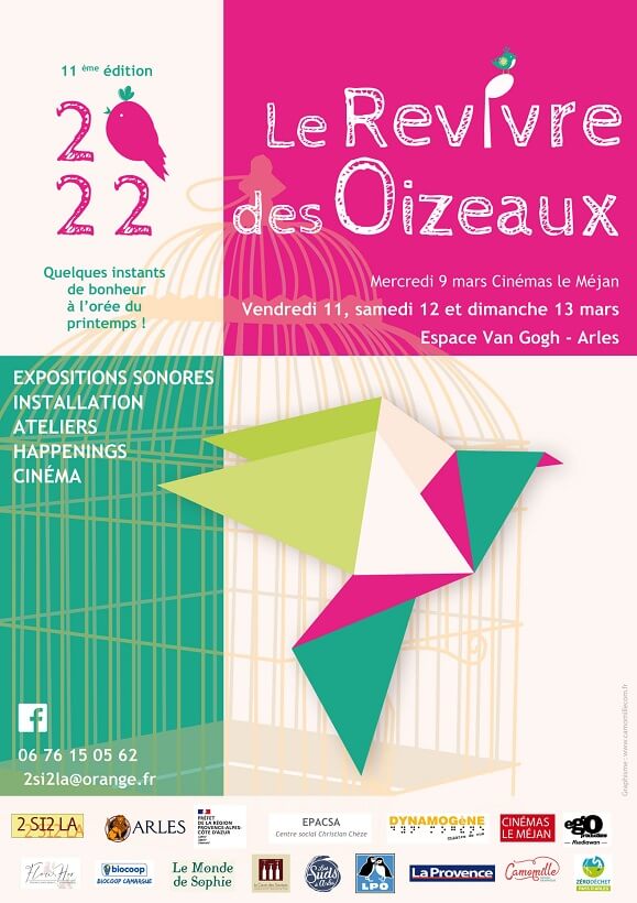 « Le Revivre des Oizeaux » qui se tiendra à l’espace Van Gogh à Arles du 11 au 13 mars 2022 est un événement poétique tout public en hommage au chant des oiseaux et à l’espace ludique, métaphorique, qu’il nous inspire. Au menu: installation, écoutes, happenings, projection de films, et ateliers gratuits… sans compter l’effet « Wow »