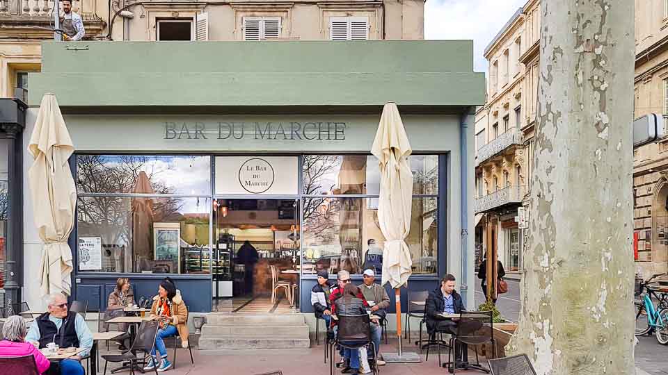Le samedi matin dès les premières heures, le Bar du Marché est le rendez-vous traditionnel des commerçants ambulants et des arlésiens qui viennent faire leur marché. Il est d’ailleurs difficile d’y trouver une table dès le milieu de matinée, dès que le soleil brille de tout son éclat sur la jolie terrasse de l’établissement qui fait face au marché. On y passe un bn moment, au calme avec son journal ou regardant le mouvement permanent de la foule qui va et vient les bras chargés de panier et autres cabas.