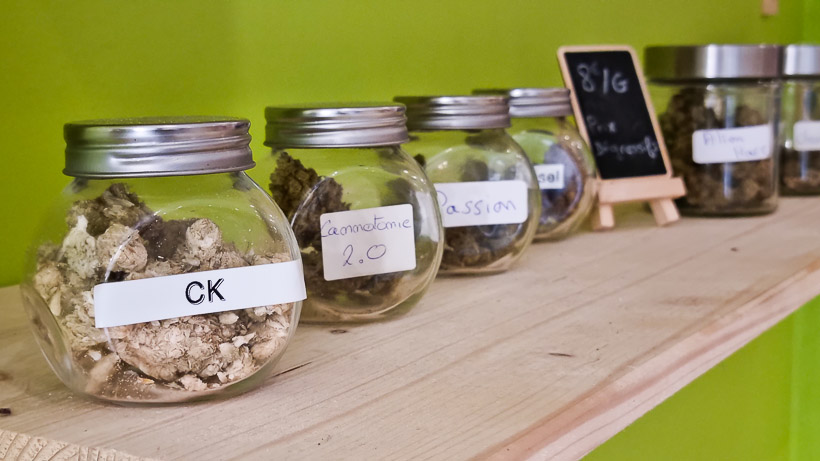 CK CBD propose une large choix de fleurs de CBD, résine, pollens, infusions, huile de cbd d’origine européenne (Suisse et Italie) à des tarifs très accessibles. Les fleurs de CBD commencent à 1€ le gramme (jusqu’à 12e selon variété et concentration en cbd). Les huiles de cbd commencent à 45e la fiole en 15%. Tous les produits sont d’origine européennes et la boutique dispose de tous les certificats d’analyse réalisées par des laboratoires français certifiés. Tout est transparent, notamment pour vous garantir que les produits respectent bien les normes françaises et européennes (les fleurs de CBD ne doivent pas présenter plus de 0,3% de THC). Les fleurs de CBD vous seront aussi fournies dans des poches thermo-soudées en boutique avec ticket de caisse pour vous permettre de ramener vos achats à la maison en toute tranquillité vis à vis de la règlementation.