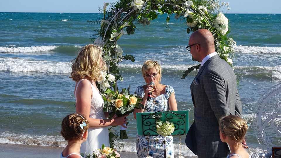 M pour la Vie a donc tout imaginé et organisé pour vous (thème de la cérémonie, déco du lieu, accueil des convives). La cérémonie va pouvoir commencer. Marie-Pierre s’occupe de tout et déroule le fil de la cérémonie avec l’authenticité, la spontanéité et l’humour qui la caractérisent. La cérémonie des voeux réciproques permet au couple d’acter leur amour réciproque dans un moment inoubliable qui marquera leur vie pour toujours. A la fin, Marie-Pierre conclu tout en poésie la cérémonie en adressant ses voeux personnels aux 2 amoureux avec qui elle noue des relations de confiance et de complicité très fortes au fil des différents rendez-vous.