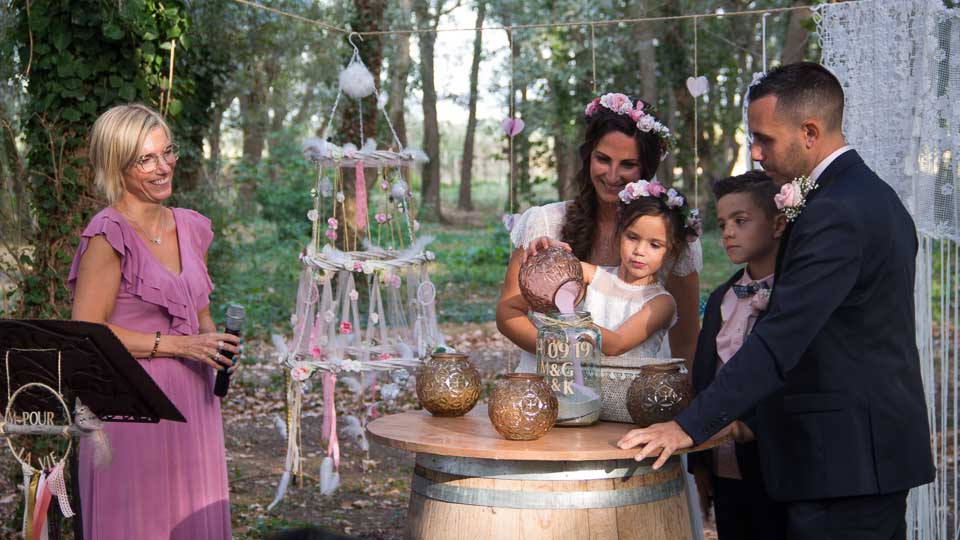 Officiante – Cérémonie – Laique – Arles – Originalité – LGBT – Couple mixte – Union – Rituel – Confiance – Camargue – Symbole – Alpilles – Voeux – Amour