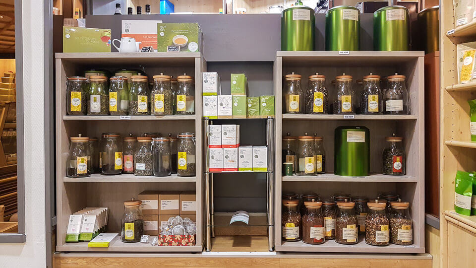 > Les produits sélectionnés pour l’épicerie fine : thés, cafés, produits locaux