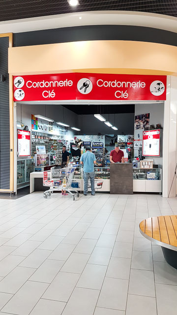 Située dans la galerie marchande du Centre Leclerc à Arles, Cordonnerie Clé est une boutique et atelier multi-services proposant cordonnerie, réparation de chaussures et petite maroquinerie, refabrication de clés de toutes sortes, cartes automobiles, badges d’accès, télécommandes, tampon encreur ou bien encore gravure de plaque professionnelle. C’est Jean-Yves qui nous y accueille du lundi au samedi avec son sourire et sa bonne humeur pour nous rendre plein de petits services bien utiles au quotidien mais aussi réparer et donner une seconde vie à nos objets.