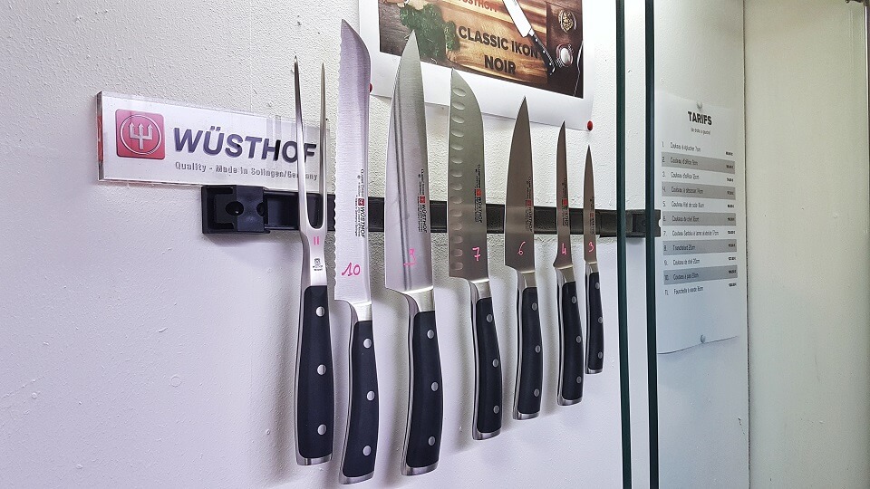 Que vous soyez professionnel de la cuisine ou amateur passionné, Thierry saura s’adapter à votre budget et vous proposer des lames de qualité avec notamment les marques Wustof et Boker dont il apprécie la robustesse et la maniabilité, ou des couteaux japonais