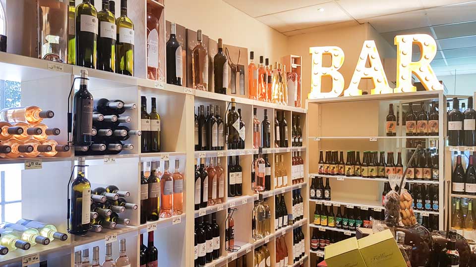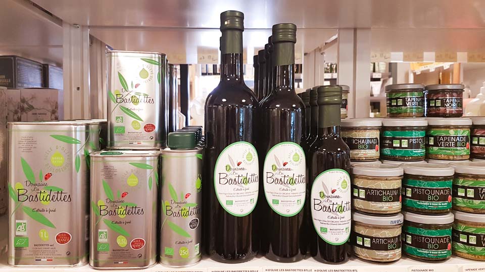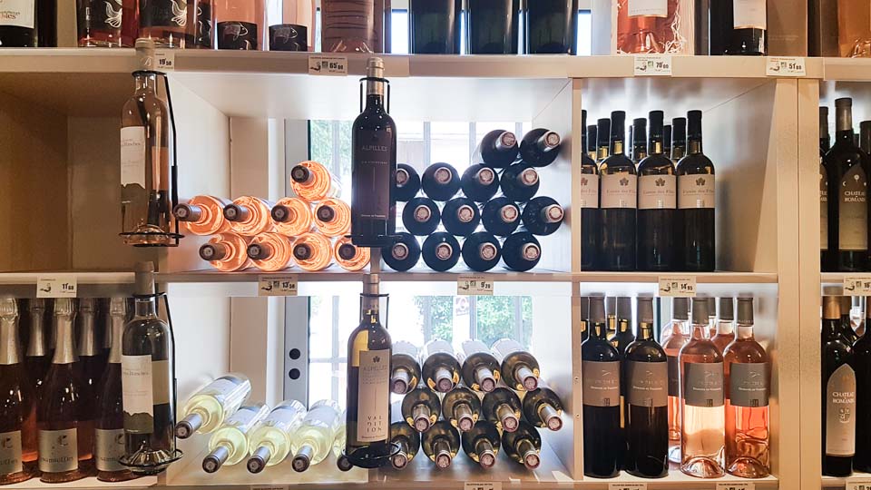 La cave à vin, particulièrement bien fournie en vins bios des Alpilles et des Baux de Provence, propose les bouteilles au même prix que le domaine en vente directe. On profite donc du choix et des prix-producteurs, tout cela au même endroit.