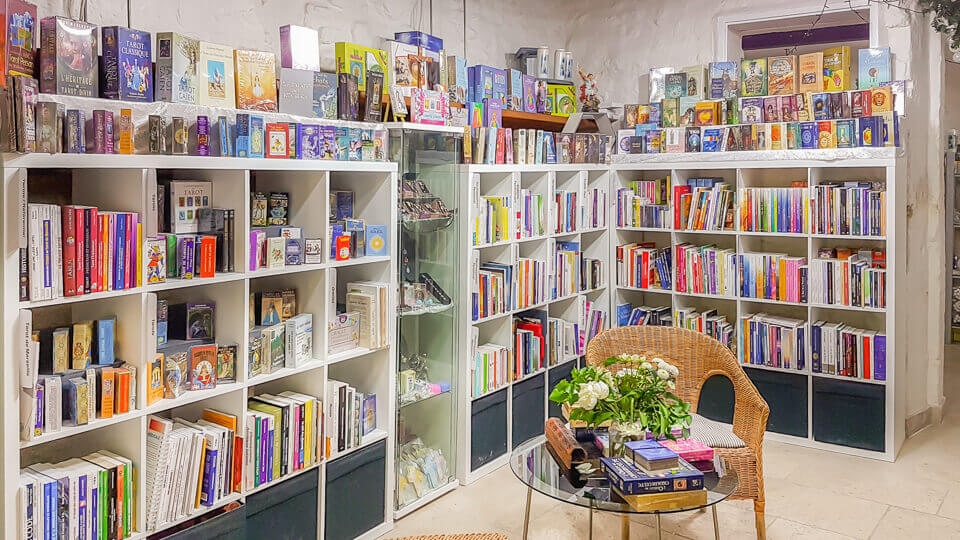 Passant de pièces en recoins, on finit par découvrir dans l’arrière-boutique une jolie pièce agréable et lumineuse donnant sur le jardin intérieur de la bâtisse et qui héberge une librairie ésotérique avec un large choix d’ouvrages et accessoires (tarots, pendules, bol tibétain…). Martine y organise d’ailleurs régulièrement des ateliers, rencontres et conférences avec des praticiens spécialisés pour permettre au plus grand nombre de s’informer sur différentes pratiques comme la lithothérapie, la relaxation, l’hypnose, le magnétisme, le bouddhisme, la spiritualité etc, mais aussi apprendre des techniques simples pour se sentir bien au quotidien.