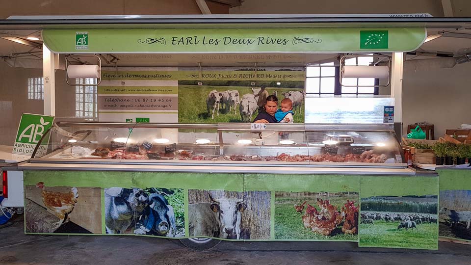 Les 2 Rives proposent du bœuf de race Gasconne et Camargue, du cochon noir, de l’agneau des Alpilles, des œufs, de la volaille avec des poulets élévés 130 jours minimum, ainsi que des produits traiteurs et de la charcuterie maison, le tout 100% BIO bien sûr.