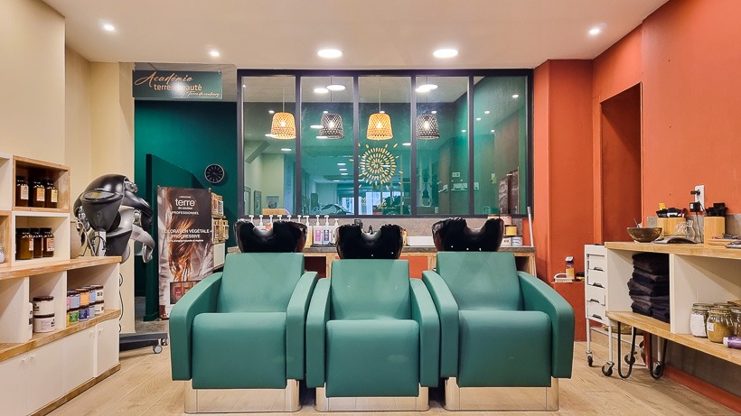 Terre de Beauté est avant tout un salon de coiffure mixte hyper professionnel, autant pour la qualité de son accueil que la technique pointue de toutes les coiffeuses pour des coupes à la fois tendance et adaptées au style de chacun. Pour les couleurs, le salon propose exclusivement de la coloration végétale et 100% naturelle grâce à de savants mélanges de plusieurs composants reconnus pour leur vertu ou leur pouvoir de coloration. Terre de Beauté crée ainsi des couleurs vivantes et nuancées sans effet « racine ». Les cheveux sont plus forts et gagnent en brillance et en volume pour sublimer naturellement la beauté des femmes comme des hommes.