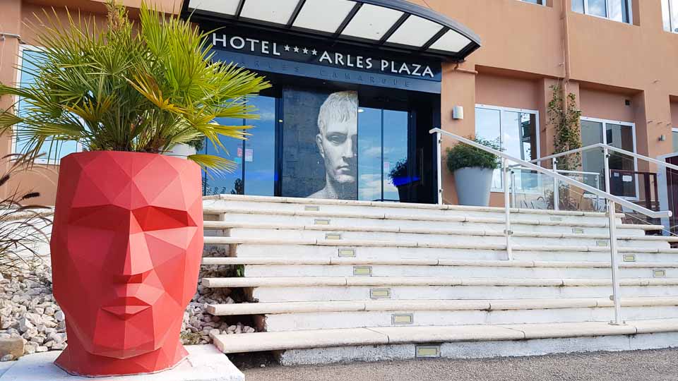 Entre Camargue et Provence, à quelques pas du centre ville d’Arles, l’hôtel 4 étoiles Le Plaza est un hôtel familial moderne offrant un accès privilégié à la visite du patrimoine arlésien et camarguais. Spacieux et contemporain, équipé de chambres entièrement rénovées, l’hôtel dispose également d’un bar, d’une salle de fitness et d’une piscine ouverte toute l’année (couverte et chauffée l’hiver). La décoration y est moderne et colorée dans un univers inspirée des grands films d’Hollywood avec photos de stars de cinéma ou encore la statue de Captain America qui accueille la clientèle dans le hall d’entrée.