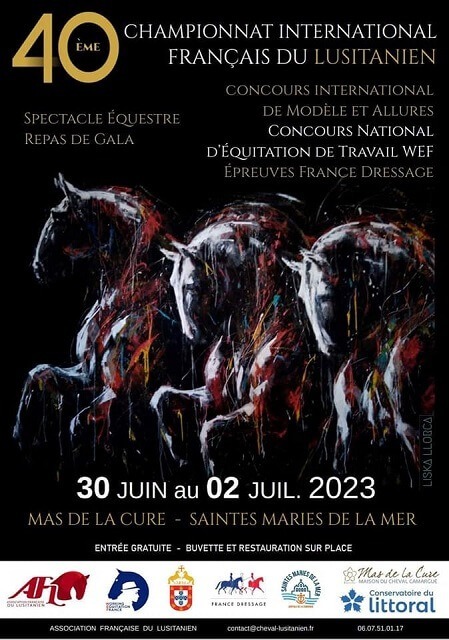 Le Mas de la Cure accueille du 30 juin au 2 juillet 2023 la 40ème édition du Championnat International Français du Lusitanien. 3 jours consacrés à ce cheval magnifique et au dressage sous toutes ses formes. Les participants pourront montrer la polyvalence de la race lusitanienne en dressage, en équitation de travail, en attelage et en tri de bétail.