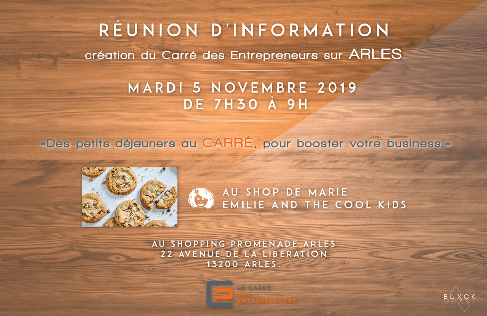 Le Carré des Entrepreneurs d’Arles va bientôt voir le jour. Une réunion d’informations est organisée le mardi 5 novembre 2019, à 7h30, au shop de Marie Emilie and The Cool Kids installée au sein du nouveau Shopping Promenade à Arles.