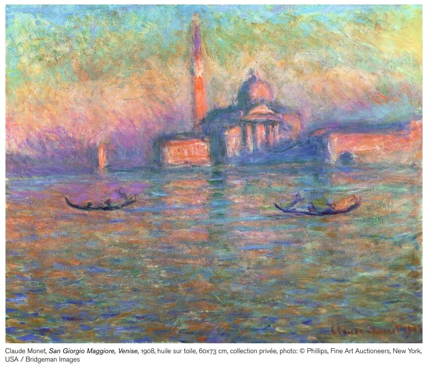 Dans un contexte de changements rapides avec l’industrialisation, le développement du chemin de fer et e du métal, Claude Monet s’inspirera des paysages, des villes et des visages de son époque. De la campagne normande aux rivages de la Méditerranée en passant par les bords de Seine, où il scrute les reflets changeants de l’eau, puis au cours de ses voyages à Londres et en Italie, Claude Monet développe une palette infinie de nouvelles couleurs et de lumières variées, enrichissant sa vision artistique et son oeuvre.