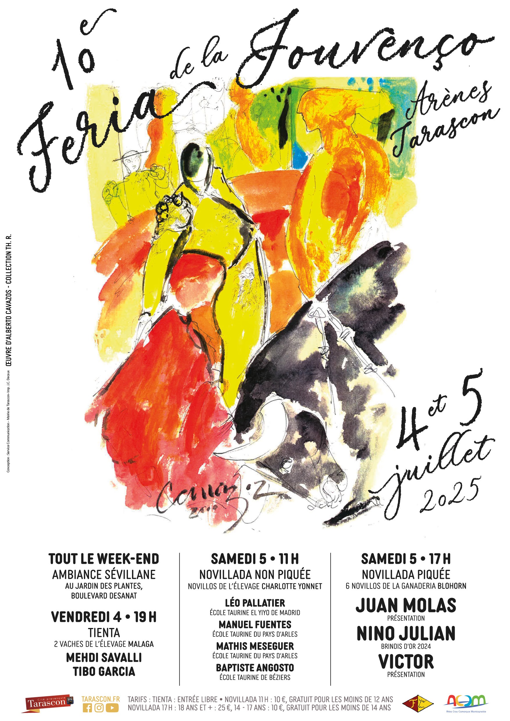 Rendez-vous incontournable des aficionados tarasconnais, la Féria de la Jouvenço 2025 aura lieu les 4 et 5 juillet 2025 aux arènes municipales de Tarascon. Au programme, une tienta vendredi soir, une novillada non piquée samedi matin et une novillada piquée l’après-midi avec Juan Molas, Nino Julian et Victor face à 6 novillos de la ganaderia Blohorn !