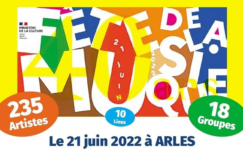 Pour célébrer le début de l’été, la Ville d’Arles déploie une programmation éclectique : les groupes amateurs et professionnels se produiront sur les scènes ouvertes en ville, places Wilson, Voltaire, du Forum, Paul-Doumer, Cavalerie, esplanade Charles-de-Gaulle et salle des Pas-Perdus et à la Verrerie. Au programme, rock, jazz, variété française…