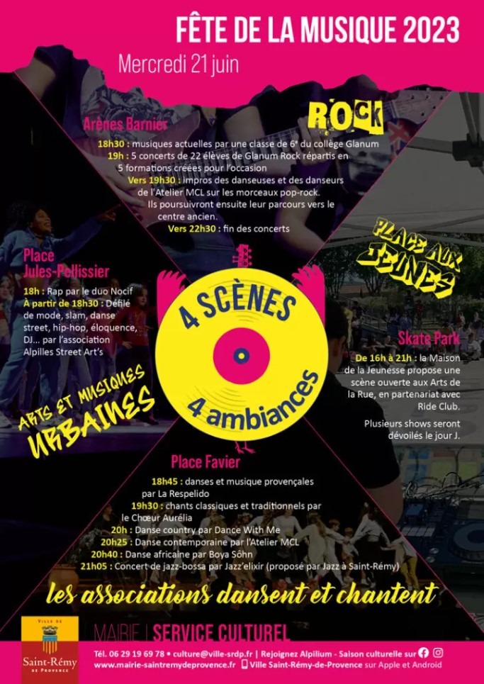 Le samedi 21 juin 2025, comme partout en France, Saint-Rémy-de-Provence fête la musique. La ville met à l’honneur les artistes amateurs, musiciens et danseurs qui, toute l’année, font de la musique leur passion.