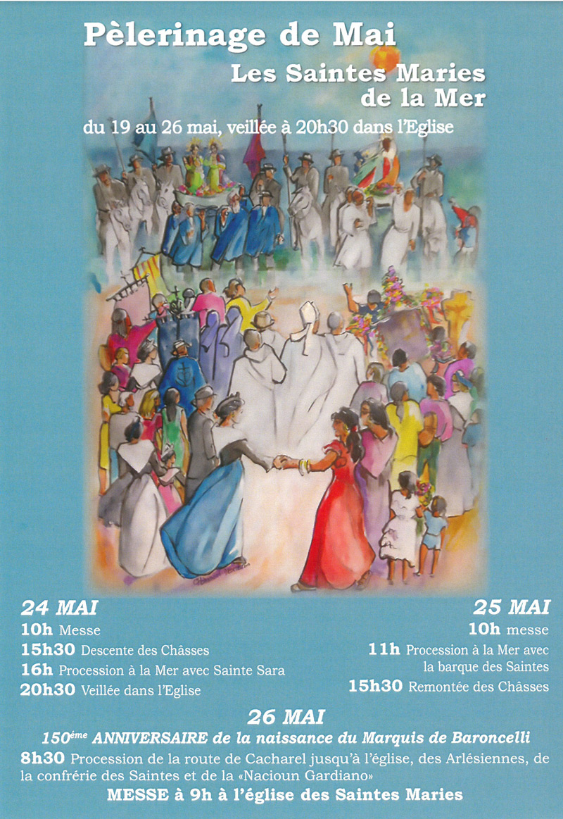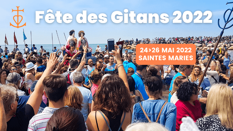Chaque année, gitans de l’Europe entière et camarguais se retrouvent aux Saintes Maries de la Mer pour y vénérer leurs saintes :  Sainte Sara la Noire, la patronne des gitans, mais aussi Sainte Marie Jacobé et Sainte Marie Salomé. Du 24 au 26 mai 2026, la cité camarguaise vivra au rythme de ce grand pèlerinage rassemblant plusieurs milliers de personnes dans l’église, les rues et sur les plages des Saintes Maries de la Mer.