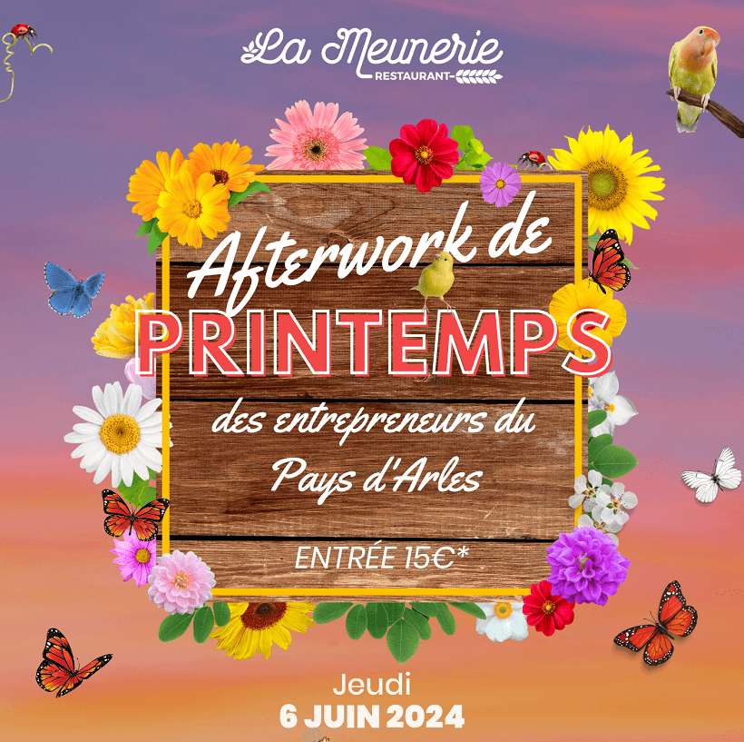 Au printemps, la nature s’éveille, bourgeonne, éclot, reverdit puis foisonne et fleurit de toute part…. tout comme les idées et les projets dans la tête des entrepreneurs ! Pour célébrer cette période propice à l’initiative et à la création, rendez-vous le jeudi 6 juin 202′ au restaurant La Meunerie à Arles pour la grande Fête de Printemps des Entrepreneurs du Pays d’Arles !