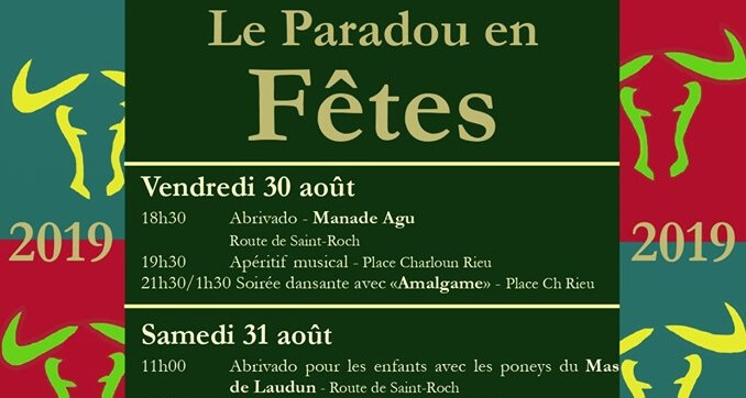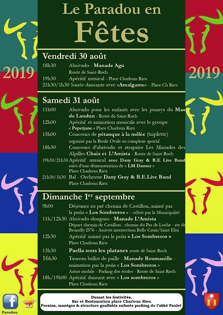 La Fête Votive de Paradou 2023 aura lieu cette année du 1er au 3 septembre 2023. Au programme des festivité : abrivado, paella, apéro musical et ambiance festive pendant 3 jours autour des traditions du village.