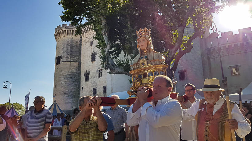 - 18h30 : ÉGLISE SAINTE-MARTHE – Procession des reliques de Sainte Marthe. Avec la Tarasque et les Tarascaïres. > Départ de l’église Sainte-Marthe vers la rue Clerc de Molières, la rue des Halles et la place du Marché