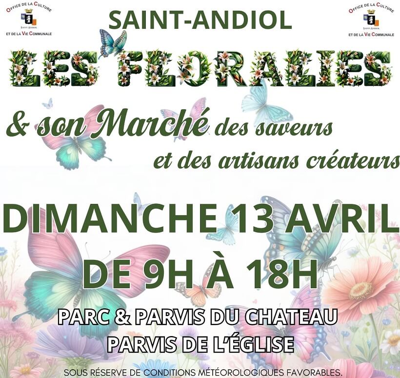 Saint Andiol accueille les Floralies le dimanche 13 avril 2025 dans le parc du château. Grand marché aux fleurs et aux végétaux, marché artisanal, animations pour les enfants, le printemps et la Nature seront en fête !