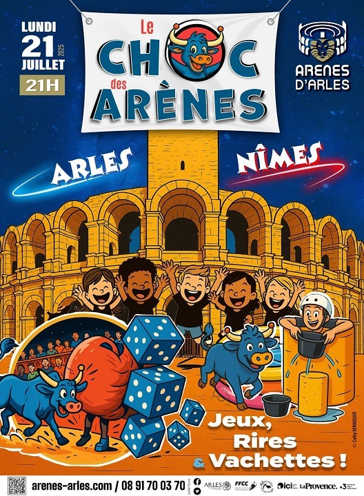Ludi Arles Organisation lance son nouveau concept dénommé LE CHOC DES ARENES (initialement Intra’Villes) où 2 équipes s’affrontent autour de jeux hilarants et défis audacieux sur le modèle de la célèbre émission de télévision qui a rythmé les étés de notre jeunesse ! Seule vraie différence, les vachettes seront bien de la partie contrairement à la nouvelle version du jeu télévisée ! Première date le 21 juillet 2025 aux arènes d’Arles avec une confrontation détonante entre Arles et Nîmes ! Quelle équipe surpassera l’autre dans le courage et l’adresse pour l’emporter ? Verdict le 21 juillet !