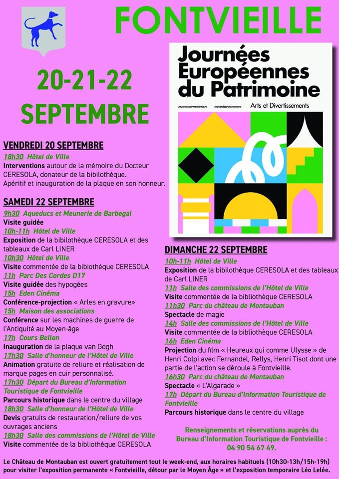 La commune de Saint Rémy de Provence organise pour les journées européennes du patrimoine de nombreuses visites et animations exceptionnelles, avec entre autres des expositions, un escape game à la bibliothèque Roumanille, des parcours pédagogiques, des visites guidée de la vieille ville, et bien sûr la visite gratuite de tous les monuments du patrimoine Saint Rémois.