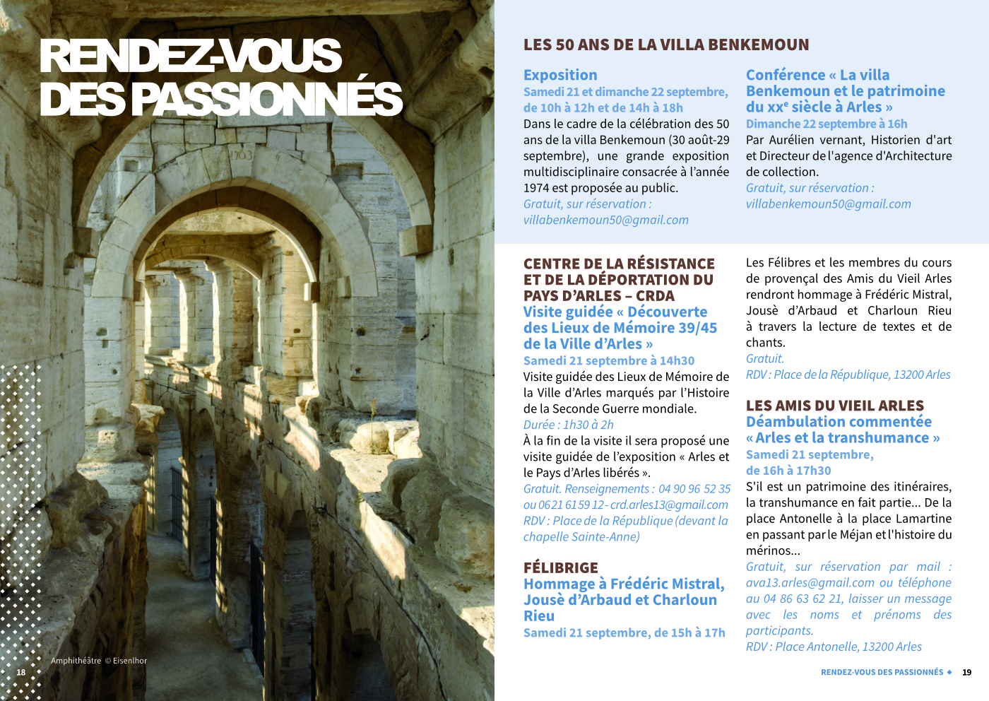 Découvrir ou redécouvrir autrement le patrimoine arlésien et camarguais grâce à des portes ouvertes dans les monuments et églises de la Ville, des visites guidées dans les musées, des expositions, balades guidées et spectacles, c’est parti pour les Journées Européennes du Patrimoine !