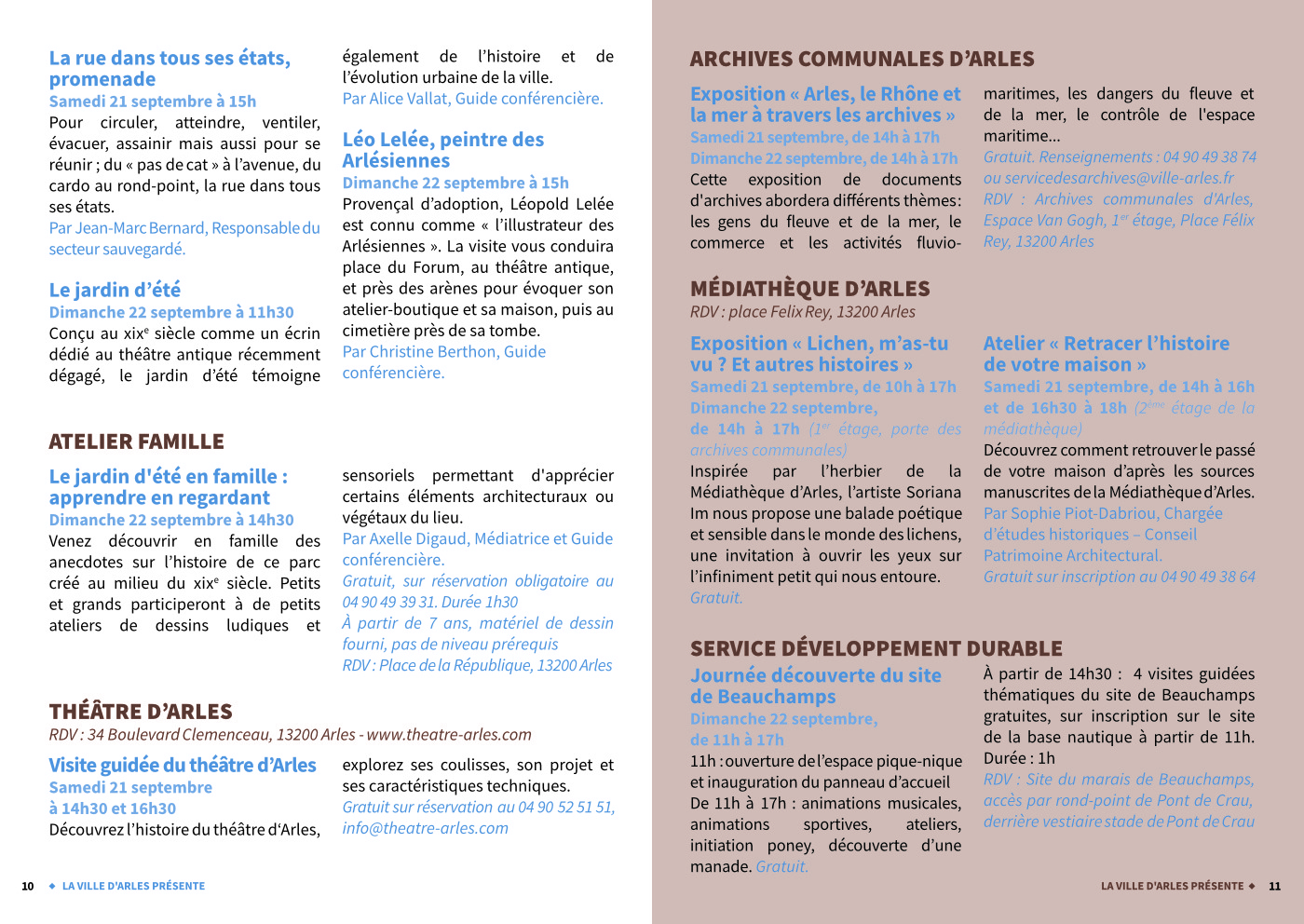 • Visites guidées, samedi et dimanche (durée 1h, réservation dès le 17 septembre).