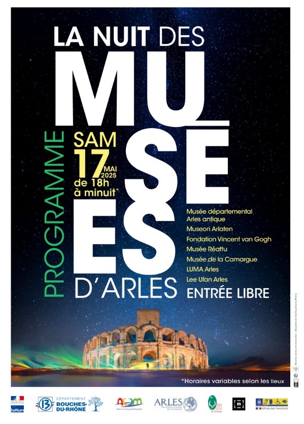 Les musées Réattu, Museon Arlaten, musée de la Camargue, musée départemental de l’Arles antique, LUMA Arles et la Fondation Lee Ufan s’associent pour proposer une nuit hétéroclite et singulière autour de la culture, de l’histoire et de la découverte.