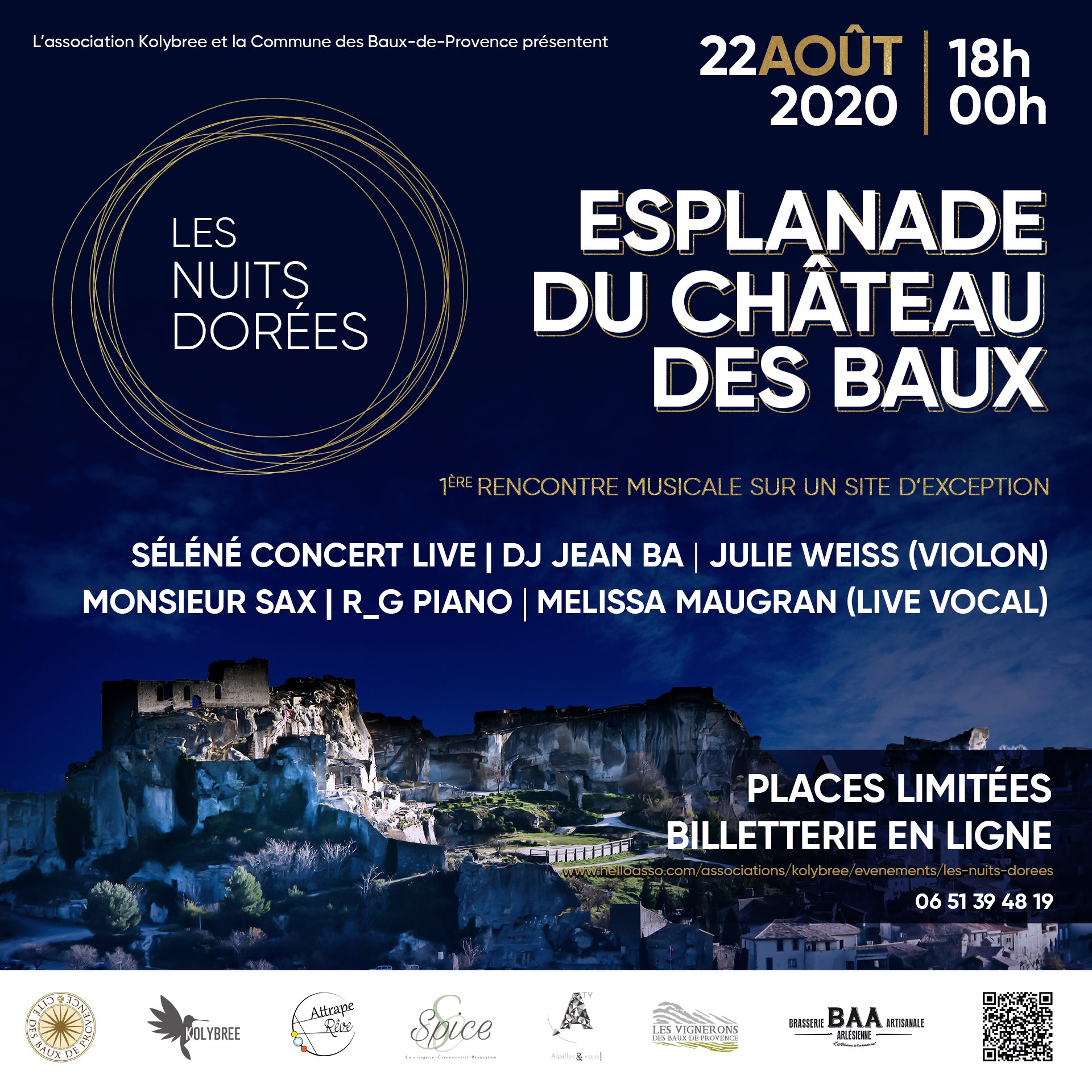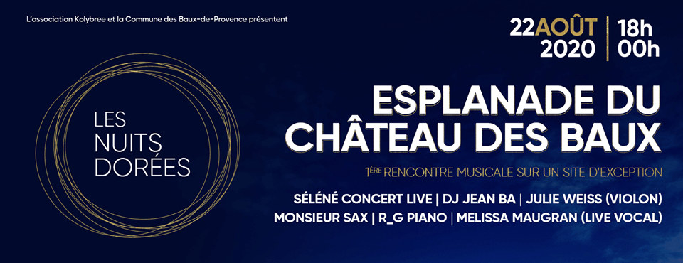 Vivez un rêve éveillé, vivez Les Nuits Dorées, samedi 19 Août2023 dans un haut-lieu du Pays d’Arles, l’esplanade du château des Baux-de-Provence ! Un rendez-vous culturel et musical pour mettre à l’honneur ce patrimoine exceptionnel au cœur des Alpilles. Concert open-air de 19h à minuit sur un large écrin de 4000 m2 pour un moment de partage, de musique, et un panorama spectaculaire à l’heure dorée !