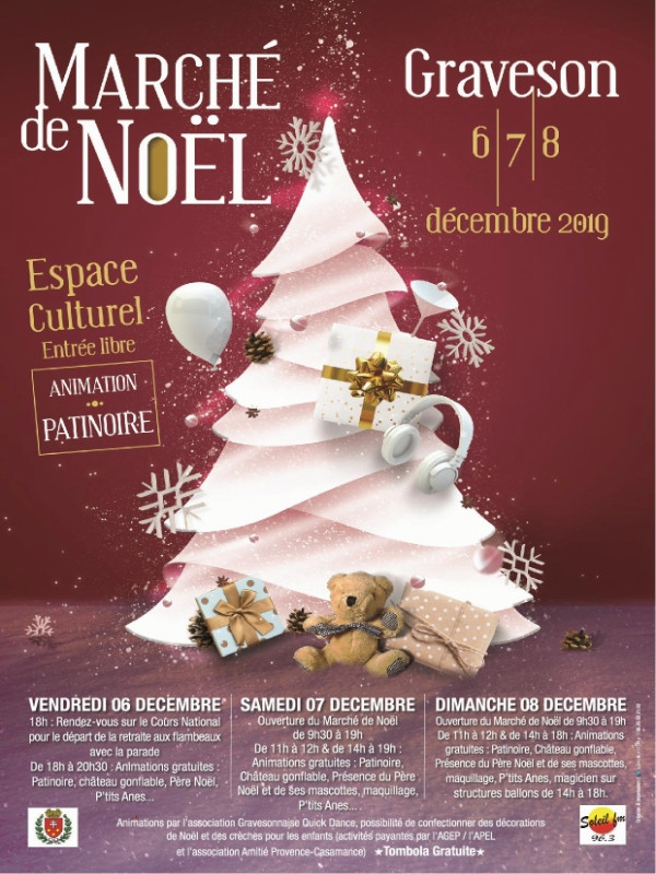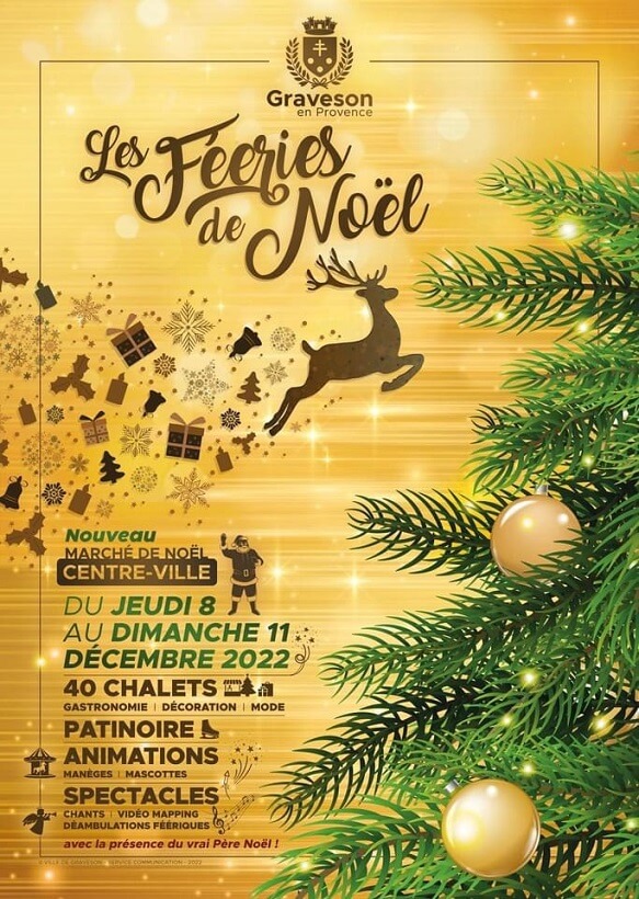 Les Fééries de Noël et le marché de Noël 2025 à Graveson auront lieu cette année du vendredi 12 au dimanche 14 décembre dans tout le centre du village. 3 jours pour vous divertir en famille et faire vos achats de Noël avec plus de 40 chalets et exposants qui seront présents pour proposer produits artisanaux et gastronomiques. De nombreuses animations sont également prévues pour les enfants et notamment une patinoire, la présence du Père Noël et ses mascottes, la parade lumineuse et bien d’autres surprises !