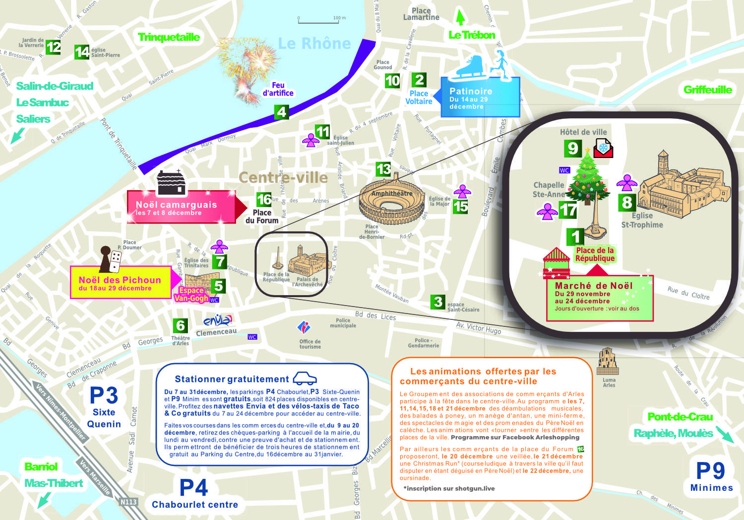 Les commerçants arlésiens proposent des animations tout au long du mois décembre les mercredis, samedis et dimanches. Déambulations musicales, balades à poney, manège d’antan, mini-ferme, spectacles de magie, père noël en calèche, oursinade, Christmas Run et DJ set, marché de noël des commerçants…