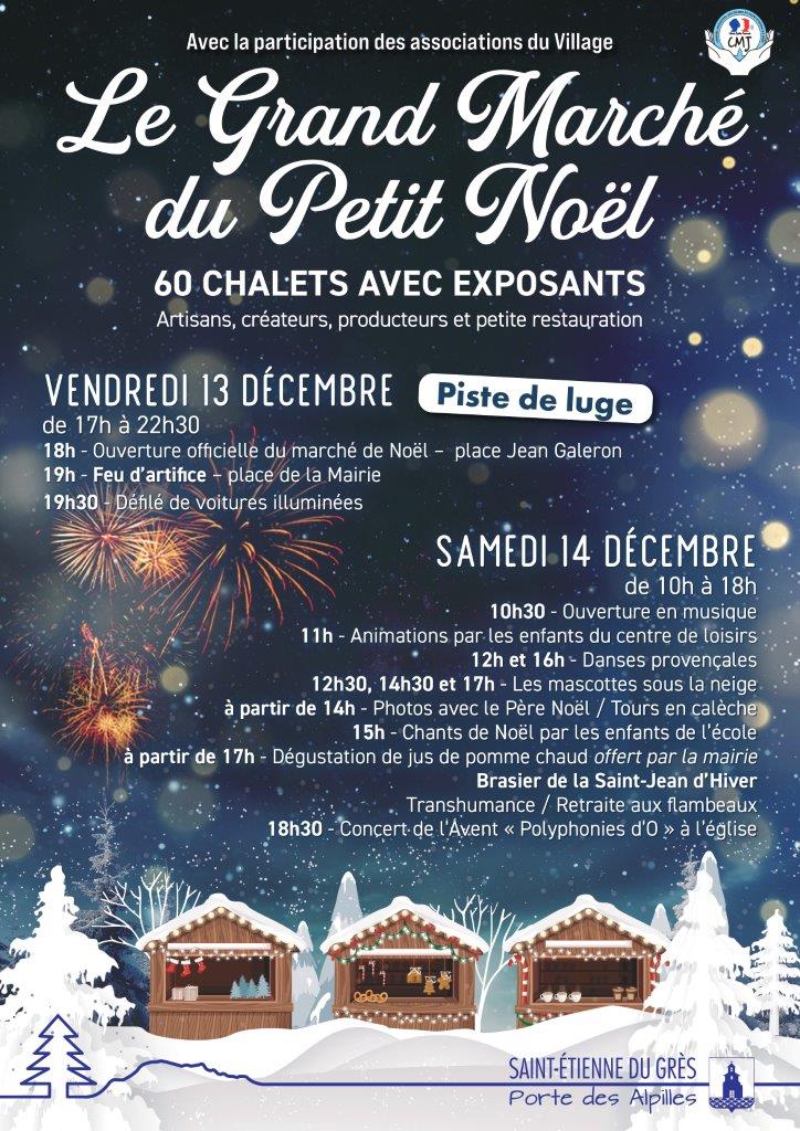Les festivités de Noël 2025 à St Etienne du Grès auront lieu cette année du 12 au 14 décembre. Tout un programme et autant d’occasions de venir humer les bonnes odeurs de cannelle et de chocolat chaud qui envahissent le centre du petit village des Alpilles ! Toujours avec cette volonté d’animer le village, la Municipalité de Saint-Étienne du Grès, en collaboration avec les associations et les commerçants locaux, a mis sur pied un programme qui ne manque pas de saveurs avec la Maison du Père Noël, le grand marché du petit Noël avec ses 50 chalets, la parade de voitures illuminées, les chants de noël, le feu d’artifice et le brasier de la Saint-Jean d’hiver !