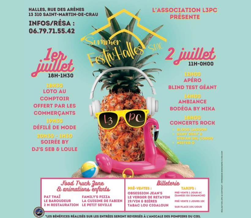 3ème édition du Summer Festiv’Halles sous les halles de Saint Martin de Crau le 29 juin 2024 partir de 19h. Au programme, apéro musical, défilé de mode la boutique Obsession Jeans, food trucks, concert des Gipsy Princes et show Extravanganza avec Dj Cassou et Martino pour une soirée conviviale et festive !