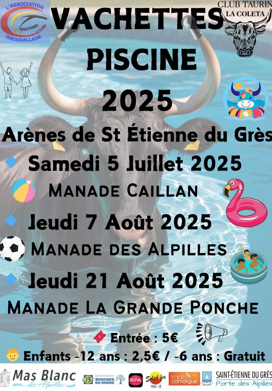 Retrouvez toutes les dates des taureaux piscines à Saint-Étienne-du-Grès