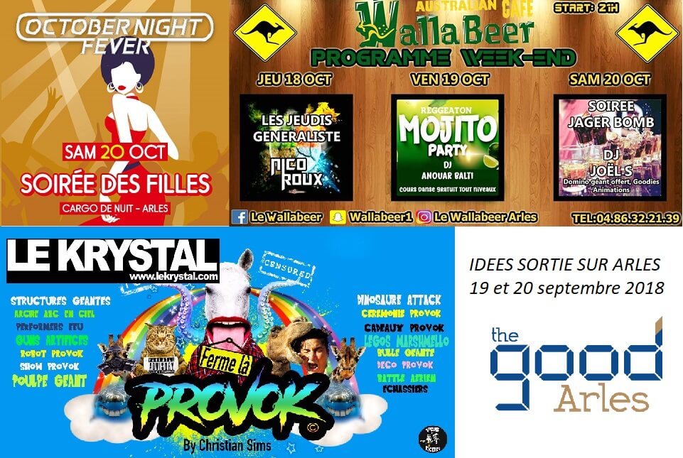 Sortir et faire la fête sur Arles ce week-end 19/20 oct 2018 Vendredi 19 octobre 2018 Le Wallabeer à Arles : Soirée Reggaeton et MOJITO PARTY. >>> Infos Samedi 20 octobre 2018 Le [...]