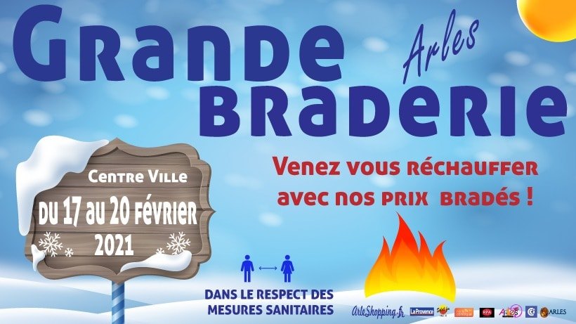 Grande Braderie d'hiver 2021 à Arles 17 > 20 FEV 2021 Comme chaque année, les petits commerçants du centre-ville d'Arles organisent leur Grande Braderie d'hiver. Devant et/ou à l'intérieur de leurs boutiques [...]